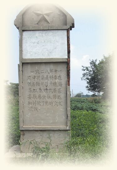 1928年11月,中共南通特委召集的(南)通、如(皋)、海(门)、启(东)、泰(兴)、靖(江)6县委联席会议,传达和讨论党的六大决议。1989年海门县政府在会议旧址立碑纪念。